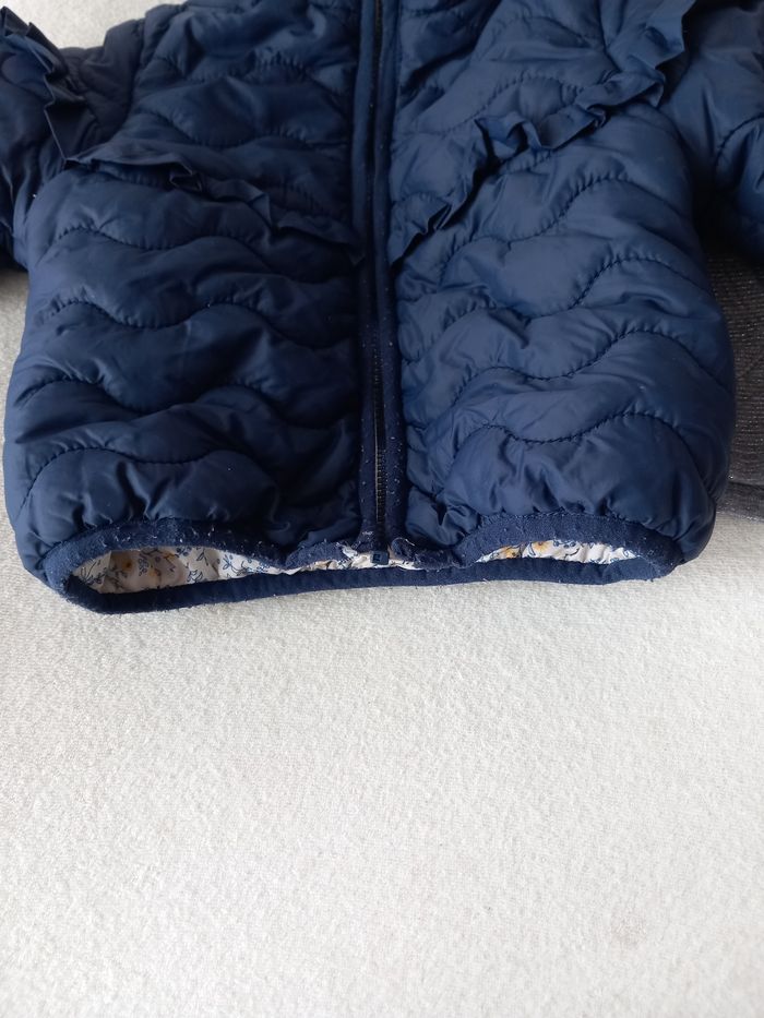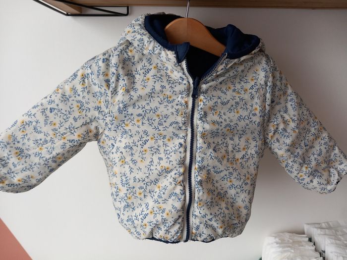 Manteau réversible à capuche Côté bleu marine et côté fleur Poignet et bas élastique Tape à l'œil 18 mois