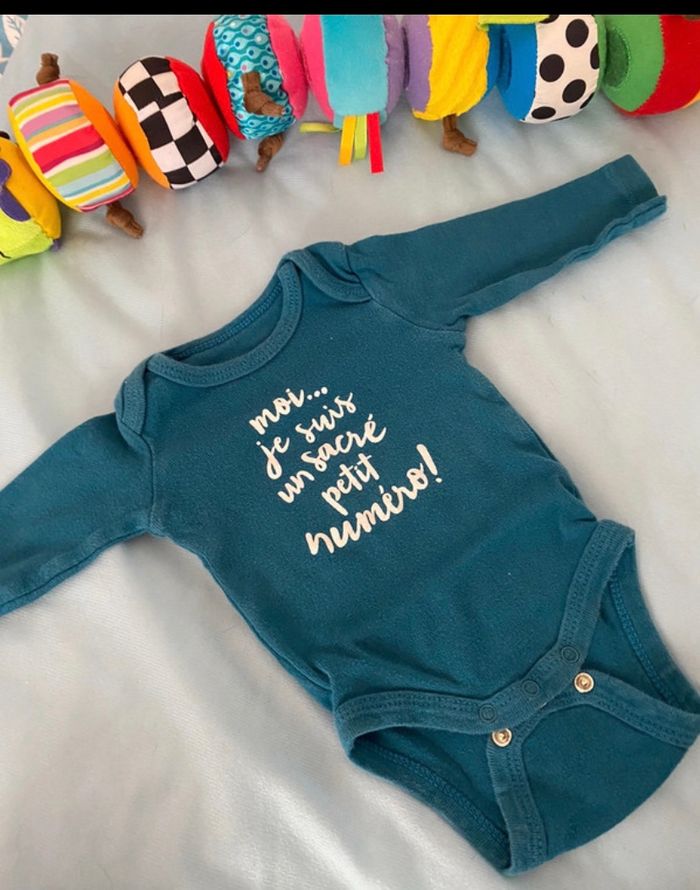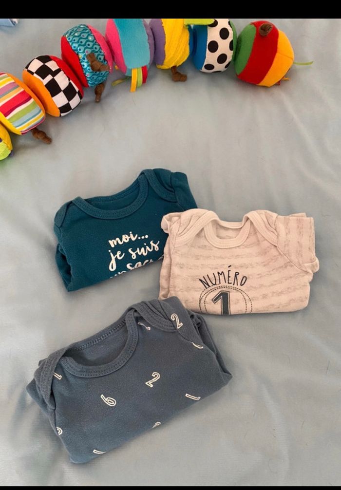 Lot de 3 bodies 3 mois col américain J’ai recousu le bleu avec les chiffres vers les pressions (voir photo 5)