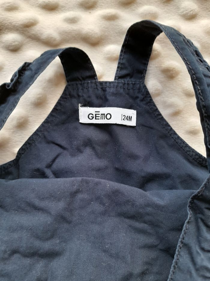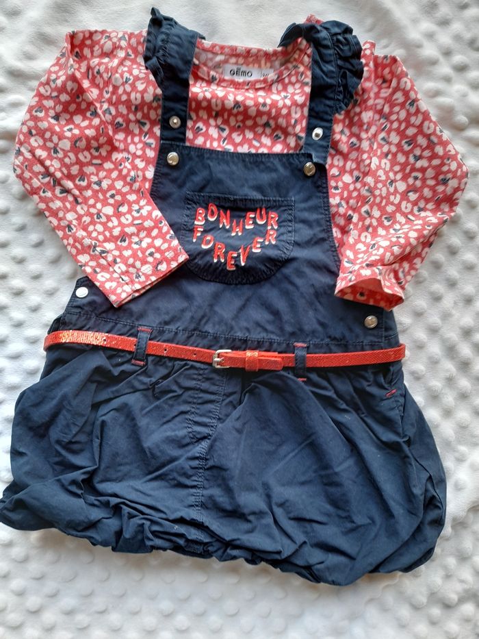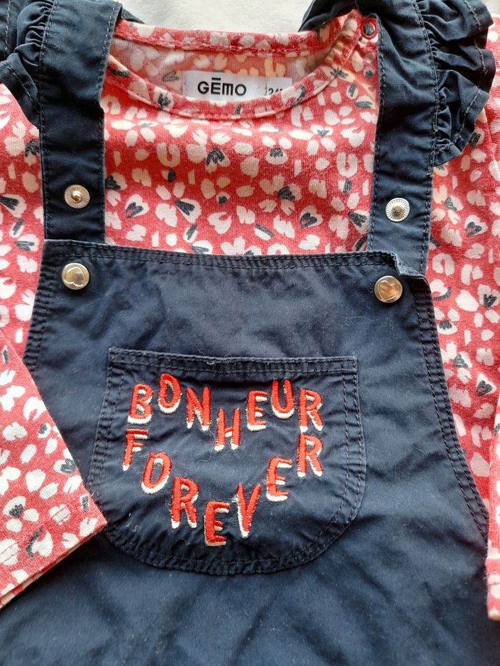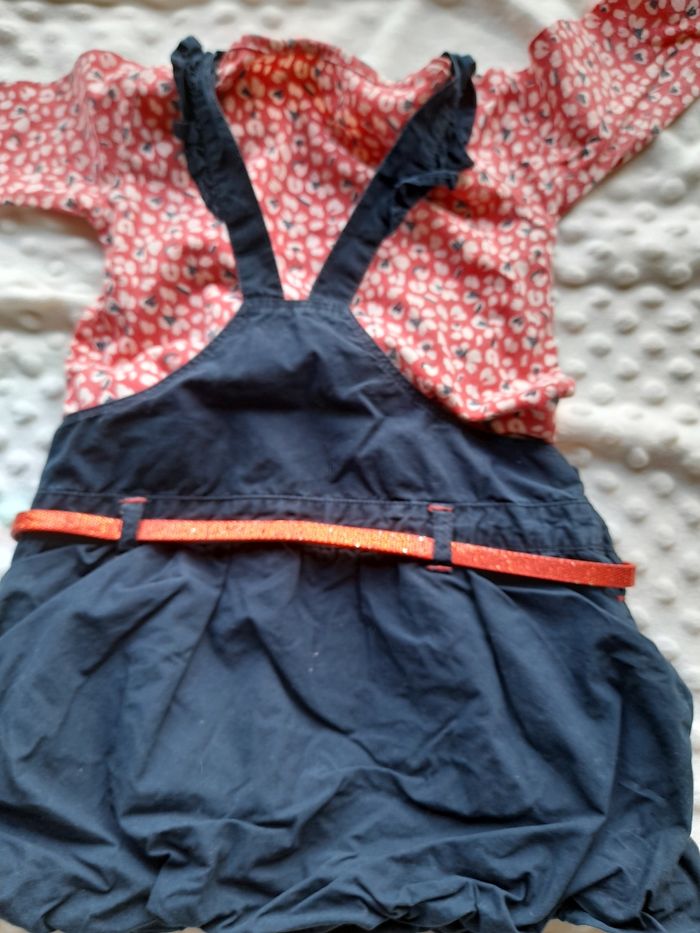 Ensemble robe bleu marine avec maillot manches longues 24 mois avec ceinture rouge paillettée gemo Pressions sur le côté et double pressions aux bretelles pour régler. #vanessacoquempotfille24mois