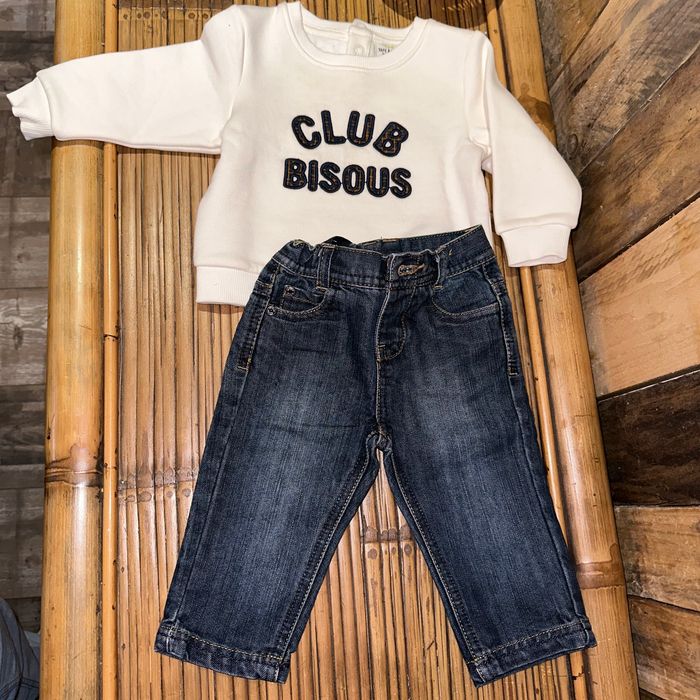 Le pull à été porté 1 fois Le jean a peine 5/6 fois Taille 9 mois