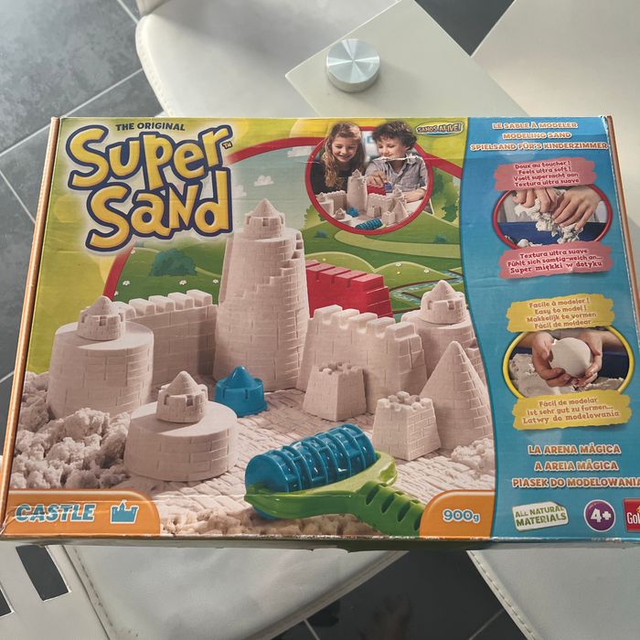Jeu de sable à modeler sur le thème château fort et en supplément une boîte avec du sable bleu