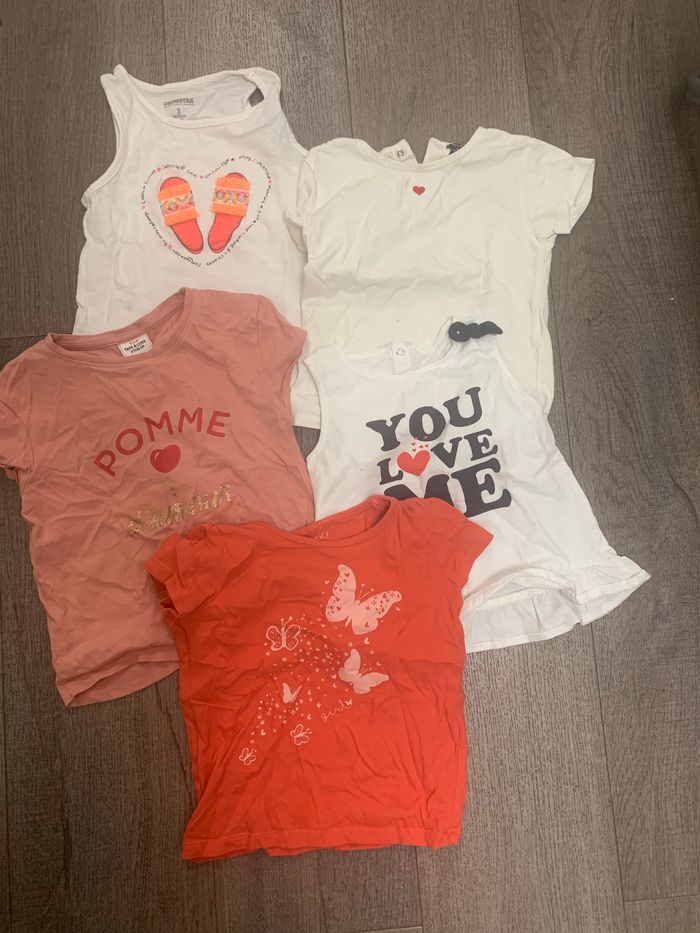 6 t-shirt/débardeur, t-24/36m 2 hauts avec 1 tache (photo a l’appuie)