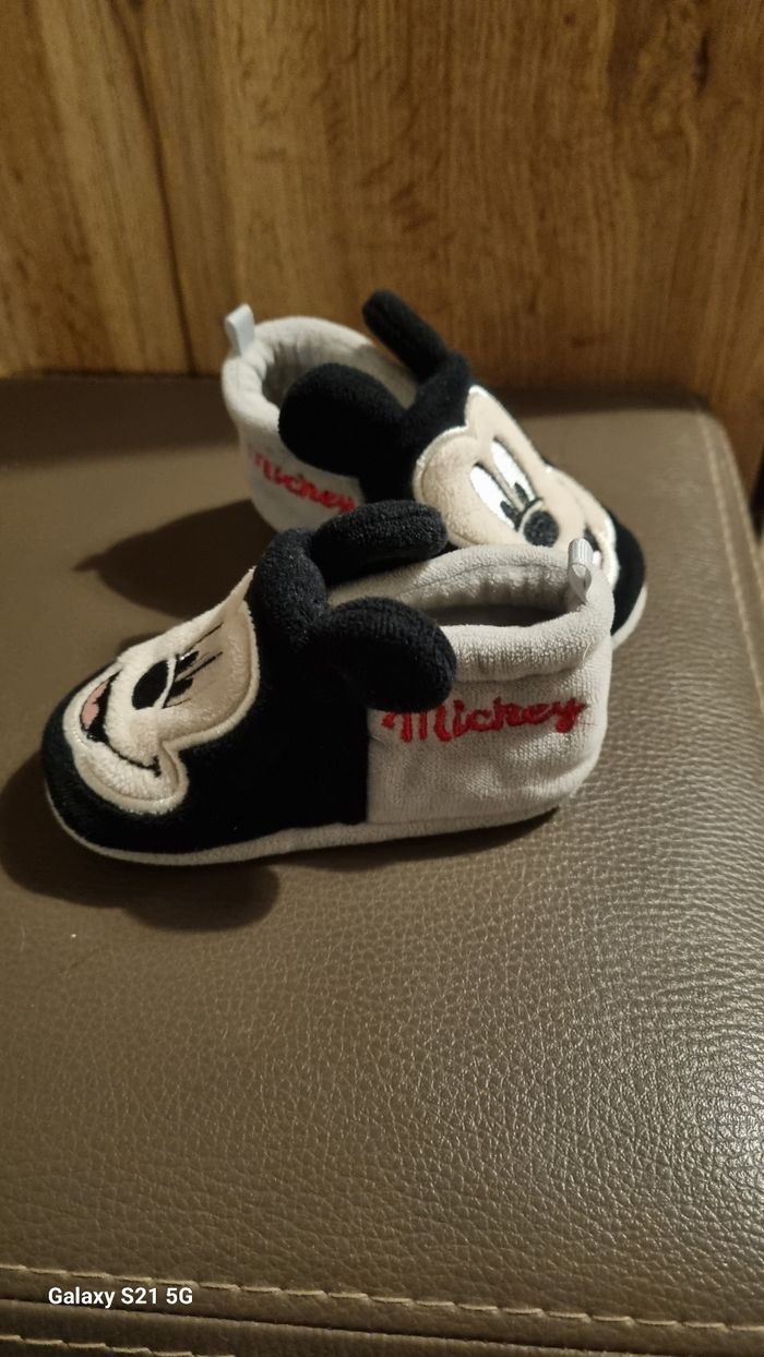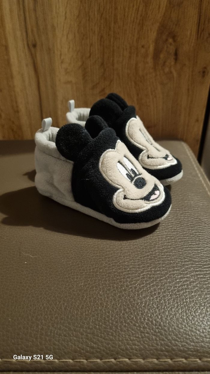 Vends petit chaussons en coton bébé Mickey. En très bon état. Peu porté. Taille 0-6 mois.