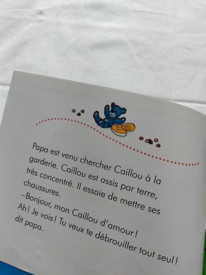 Caillou je veux le faire tout seul page abimé dû au tournage de pages par les enfants