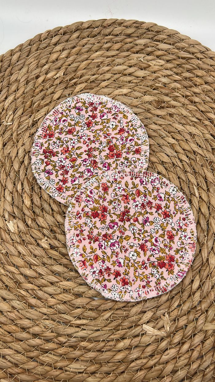 2 coussinets allaitement fleurs roses fait main - photo numéro 1
