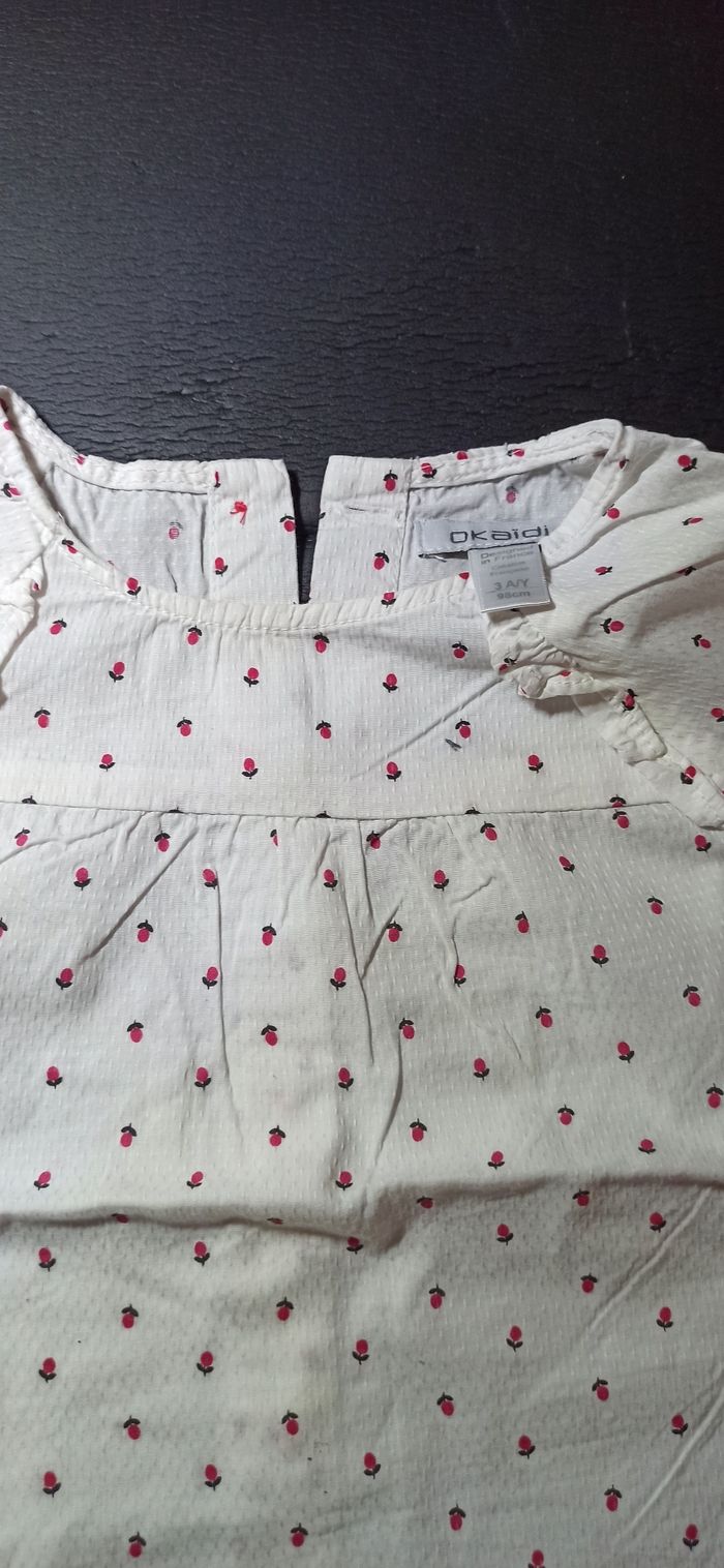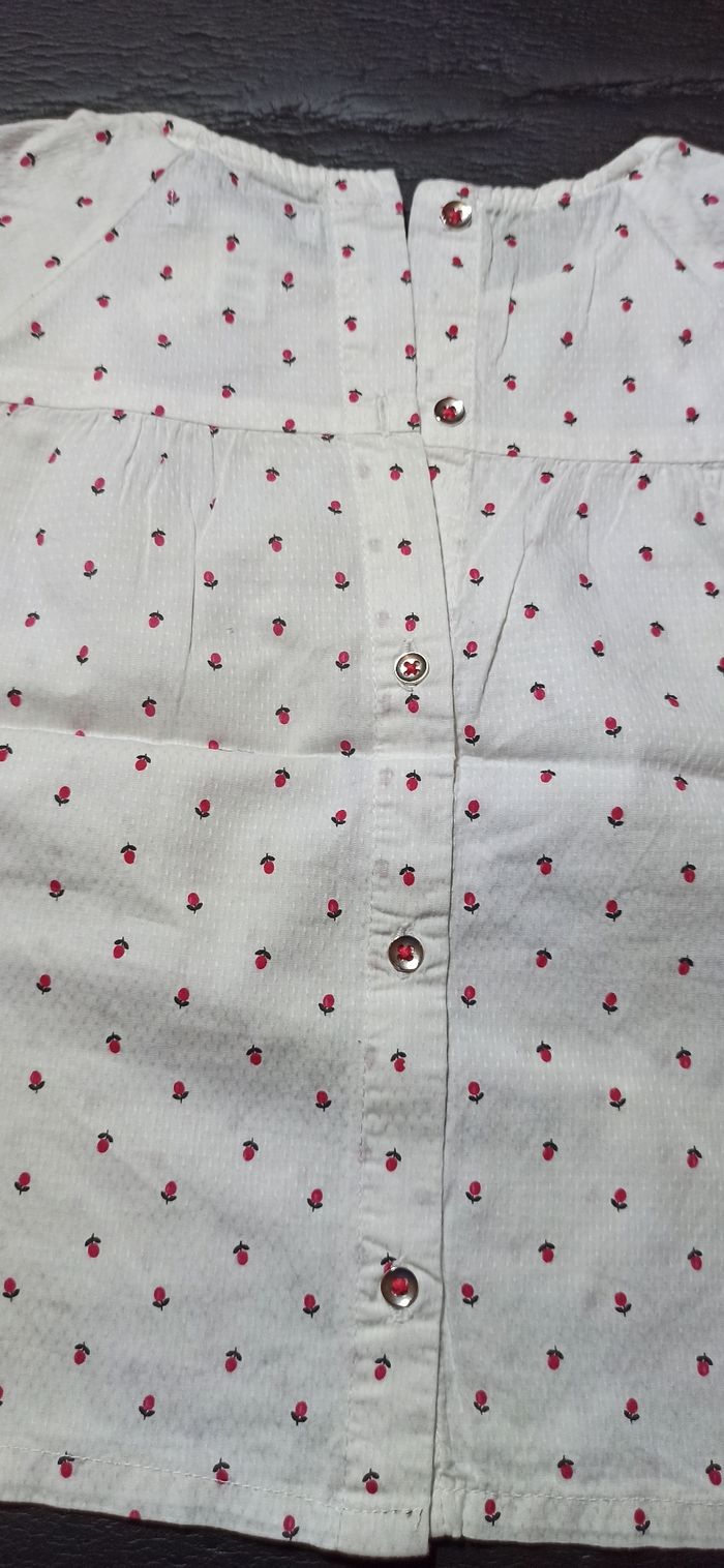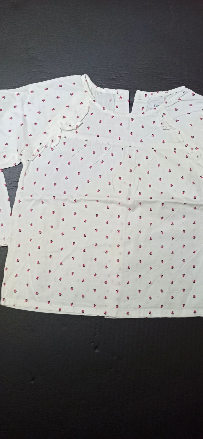 Blouse blanche avec motifs rouge Se Boutonne dans le dos