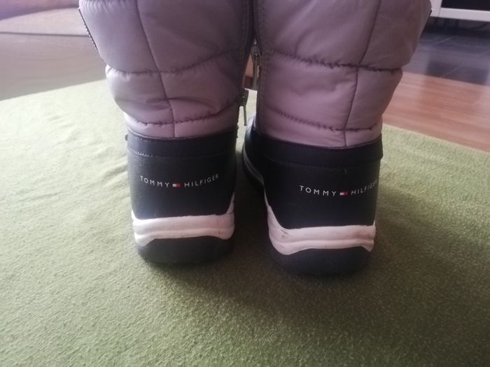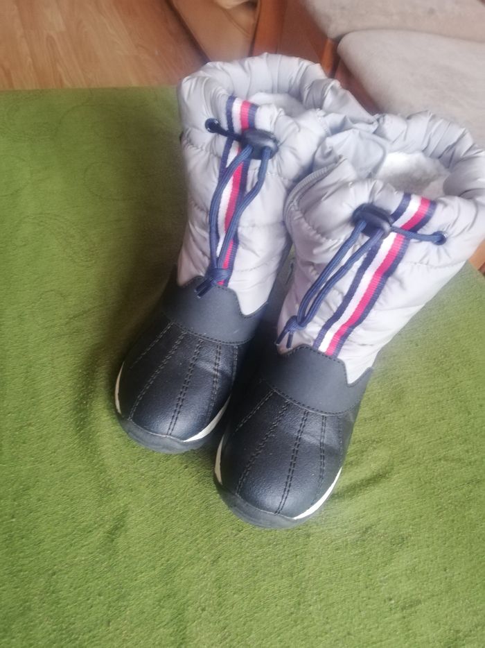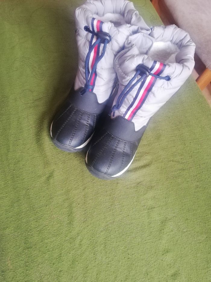 Bottes de neige. Tommy Hilfiger. Taille 33. Pratiquement neuves. Portées 2 fois. Mousse intérieure. Partie haute en doudoune +fermeture éclair. Semelle antidérapante.