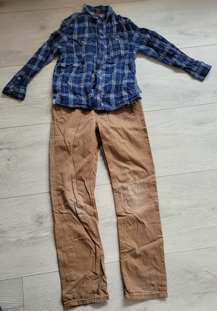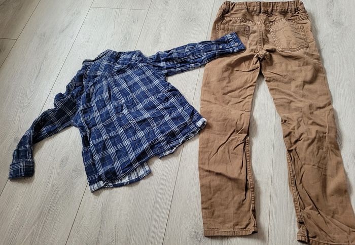Chemise 6 ans okaïdi très bon état Pantalon couleur caramel 7-8ans H & M taille réglable par élastique offert car petit trou au genou cf photo