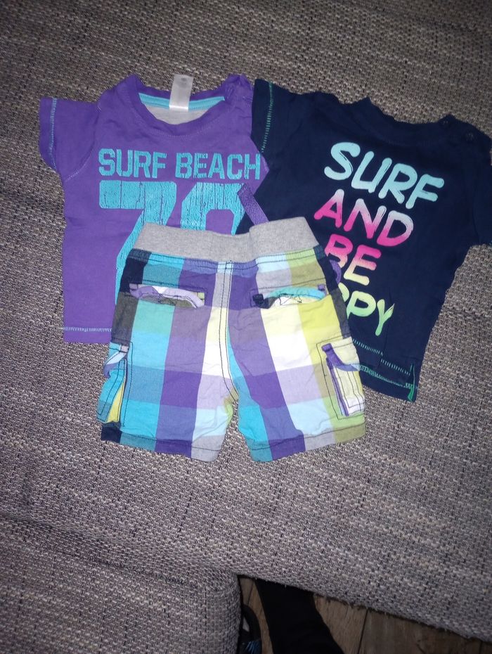 Ensemble short+2tee shirts 9mois - photo numéro 1