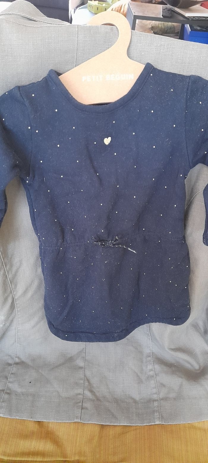Robe en sweat bleu avec petit pois dorés Fermeture par 4 boutons pression dans le dos
