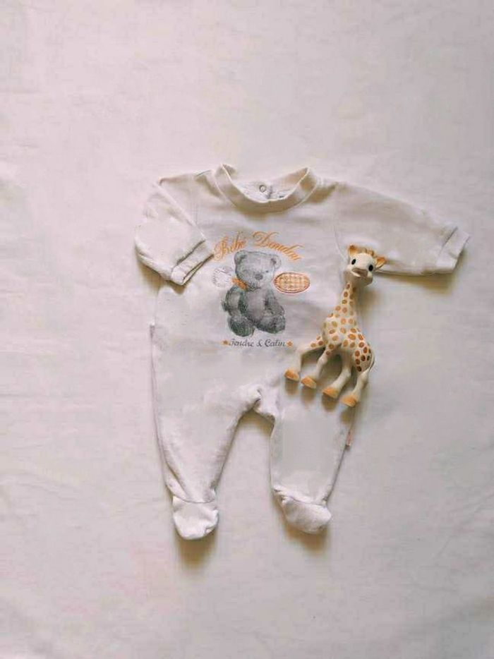 1/3 mois Avec motif nounours 🧸 Couleur crème A subit les lavages en machine mais reste correct