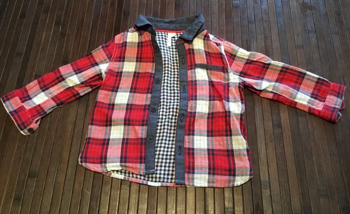 Chemise à carreaux blanc, rouge et bleu marine manches longues, taille 12 mois très bon état Marque Orchestra
