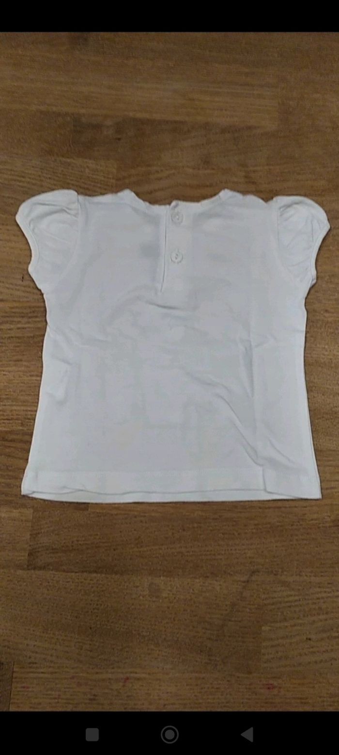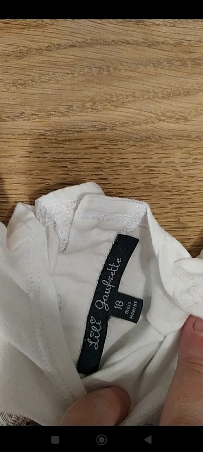Tee-shirt blanc Lili Gaufrette taille 18 mois, en très bon état. J'offre le legging 3/4 corail qui va avec car il est taché aux genoux.