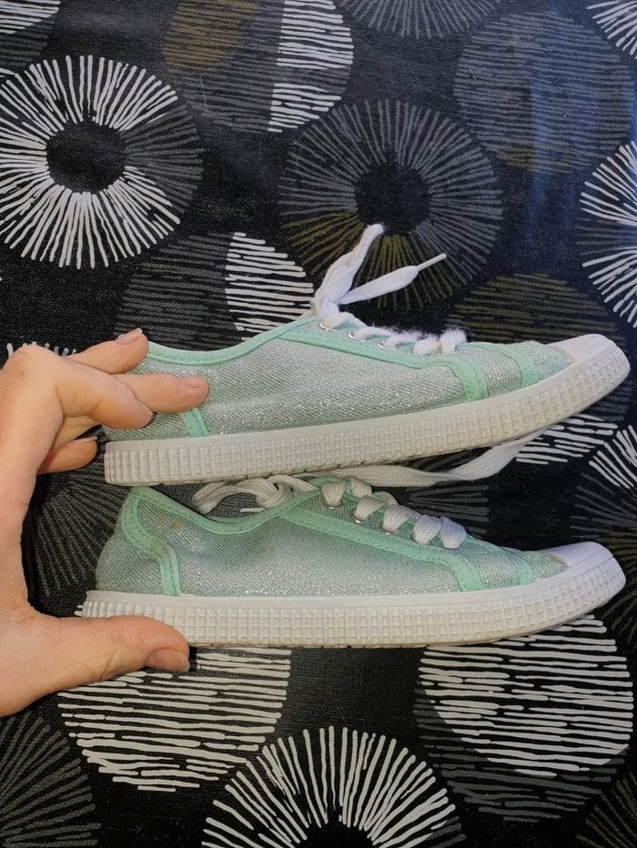Bonjour 👋 Je vend cette paire de chaussures filles 👧 p 31 👉 bien porter mais peu encore faire 👉 Couleur vert clair 👉 maison 🏠 non fumeur et sans animaux