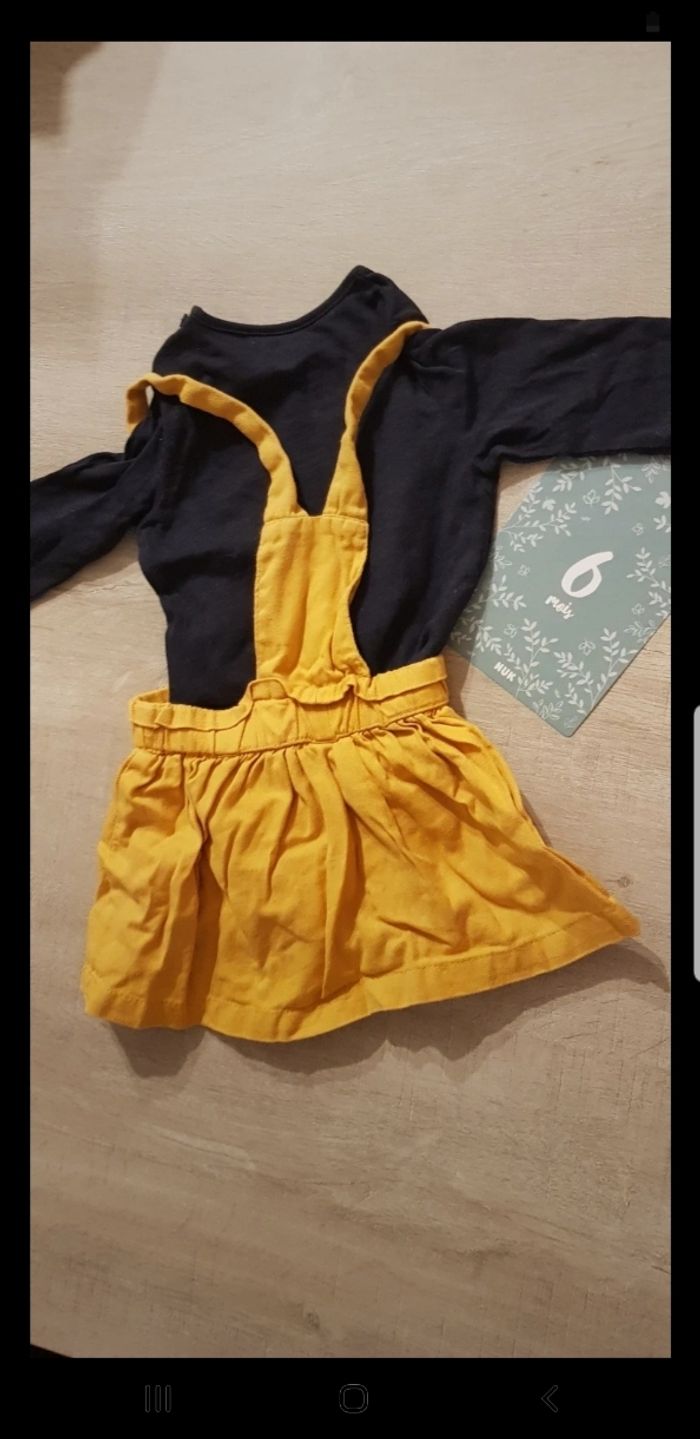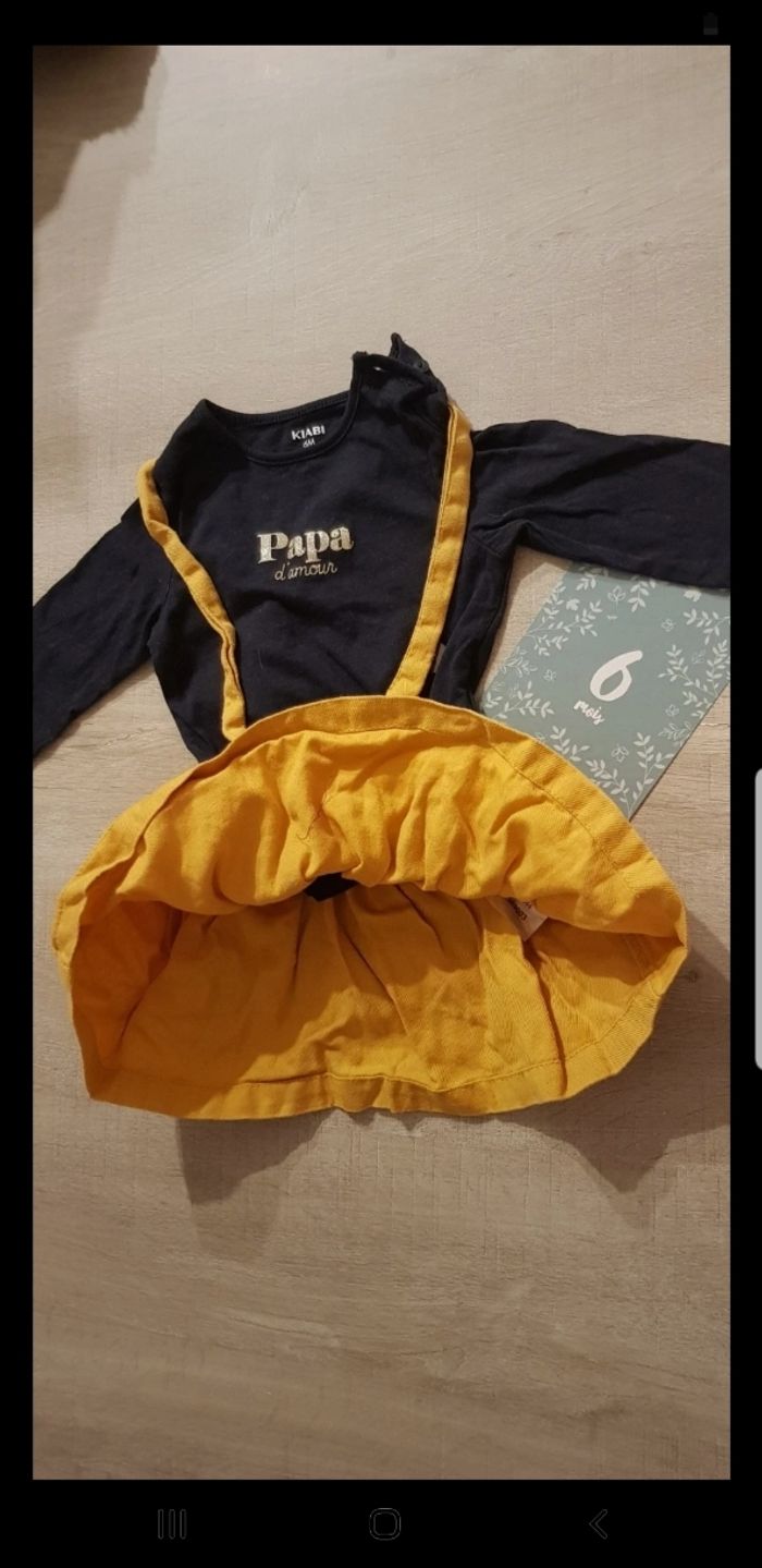 Robe salopette moutarde et son tee shirt manche longue taille 6mois tres bon etat