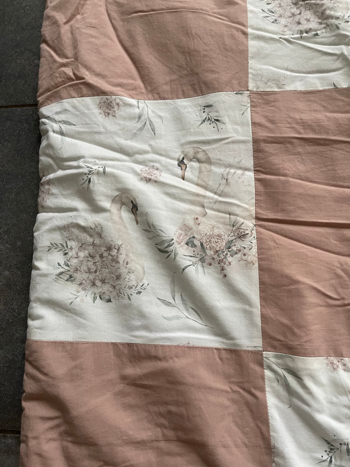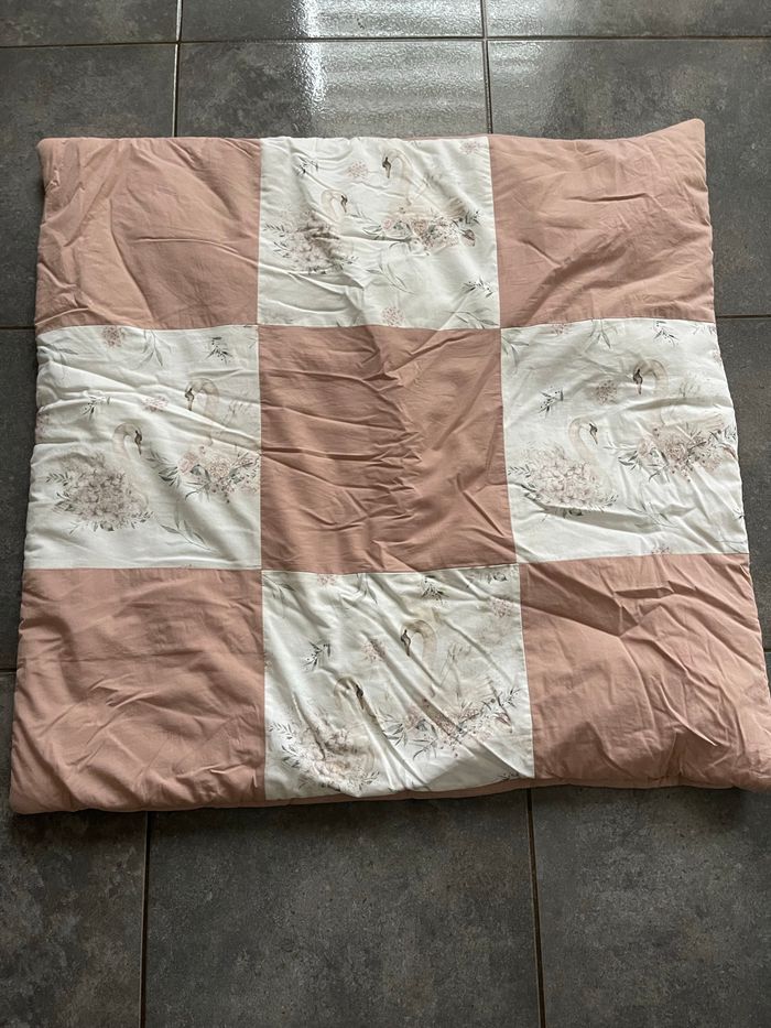 Tapis d’éveil fait par une créatrice motif cygne. Il passe en machine Dimensions 1m x 1m Payé 60€