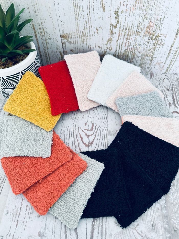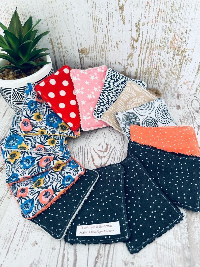 lingettes lavable et réutilisable lot de 13 Avec un côté en éponge en coton lavable à 30° pas de sèche linge et l’essorage au minimum pensez à humidifier la lingette avant utilisation plusieurs modèles au choix Envoi rapide et soigné Toutes les lingettes sur @ateliersdisalingettes possibilité de faire en plus grande quantité panier à 10€