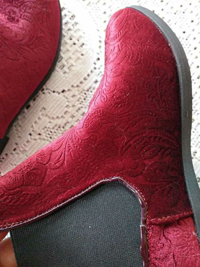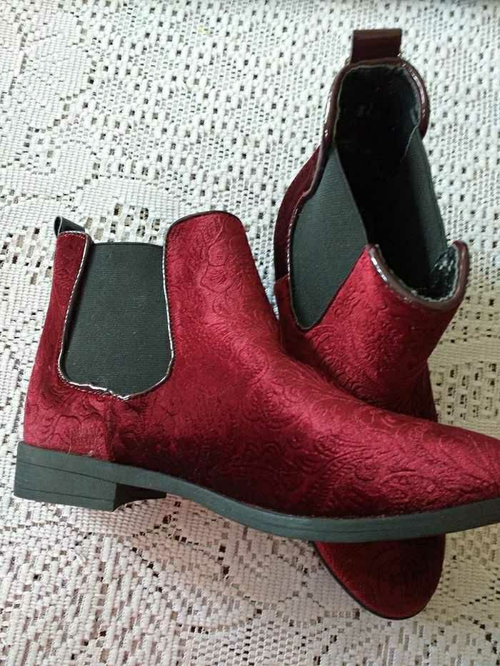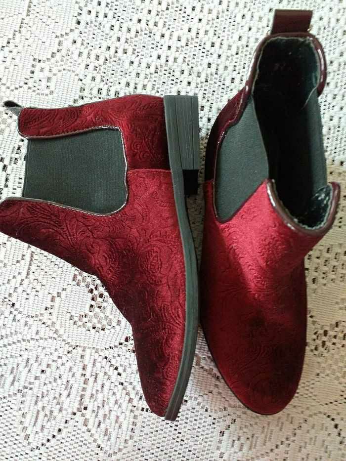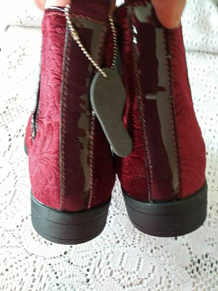 Bottines neuve taille 36/37. En velours Bordeaux. Avec motif