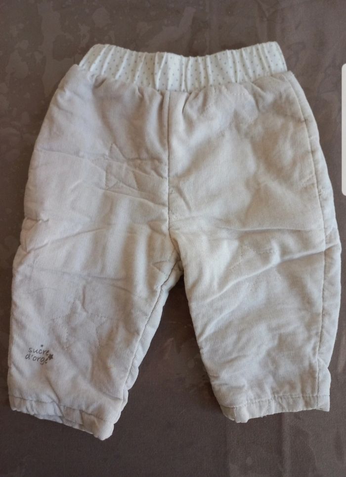 Lot de 2 pantalon mixte 1 pantalon TEX 3 mois 1 velours beige sucre d'orge 3 mois Comme neuf