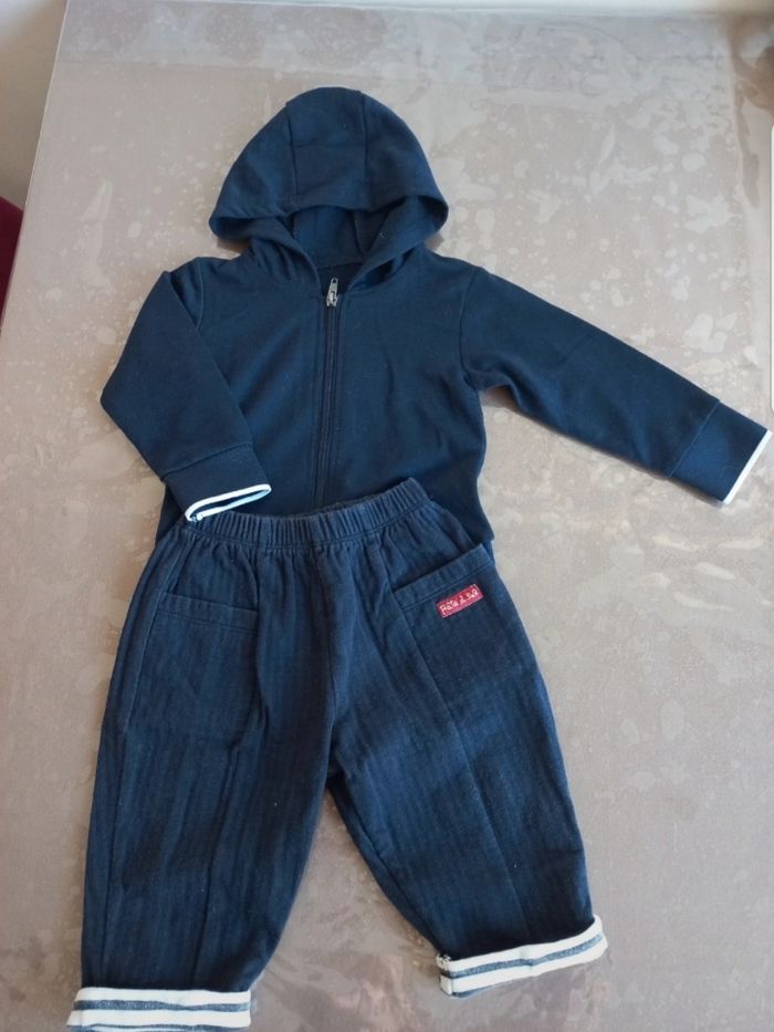 Ensemble pull + pantalon Pantalon tbe pâte à sel 12 mois Pull à capuche avec fermeture éclair neuf 12 mois Le lot peut être dissocié