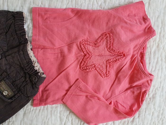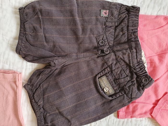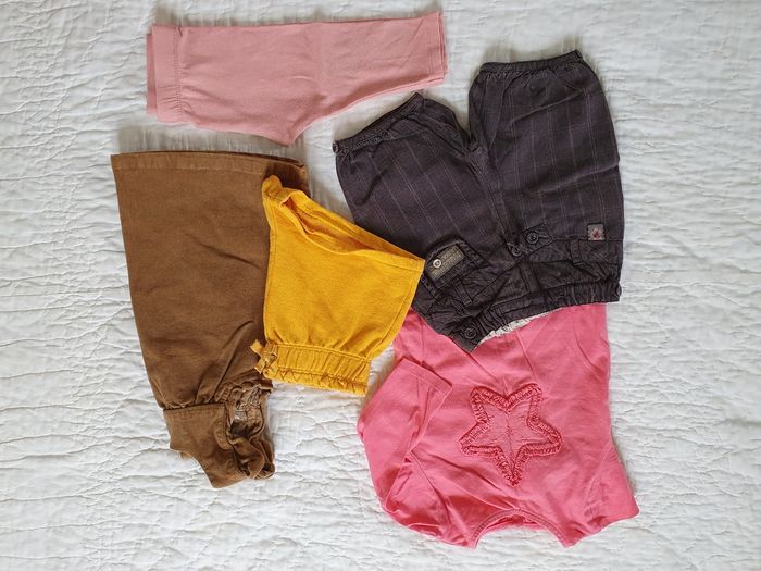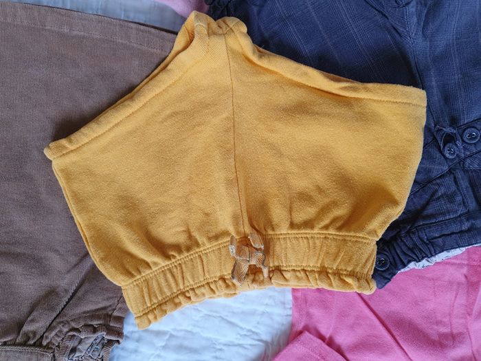 Lot en 9 mois 1 robe marron en velours 1 short Sergent Major 1 short moutarde 1 top rose Ă  manches longues 1 legging rose