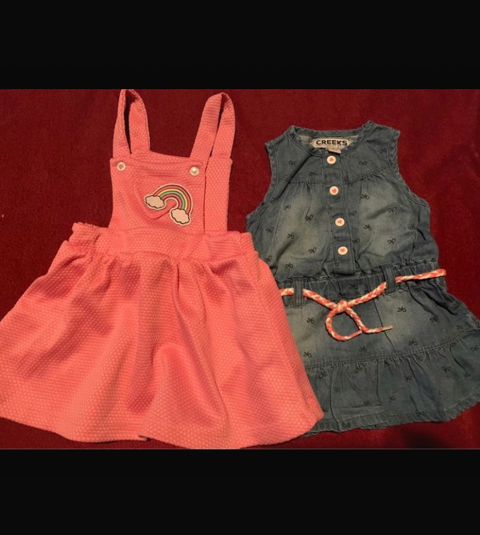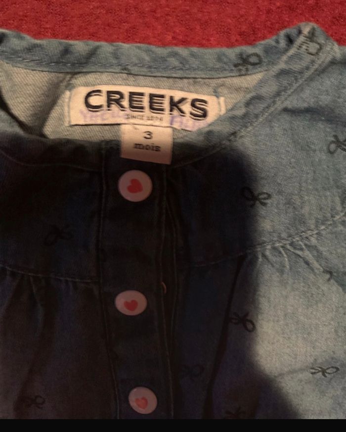 Vends 2 robes pour fille manches courtes Rose et bleu jean Taille 3 mois Marque creeks