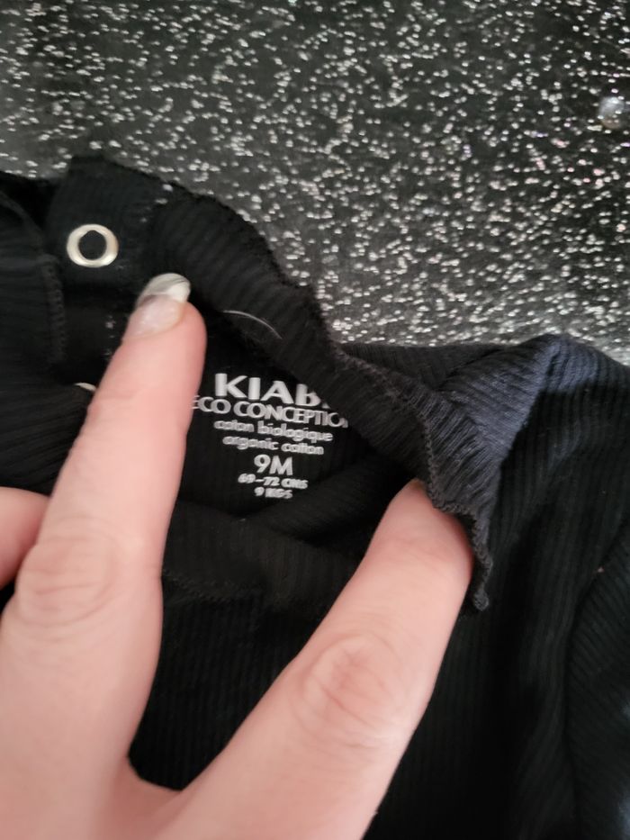T shirt manche longue côtelé noir, fermeture pression dans le dos. Taille 9 mois Kiabi eco conception