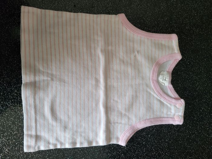 Marcel blanc rayé rose. 2 pression à l épaule 9 mois