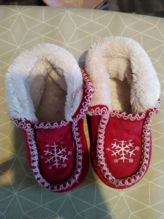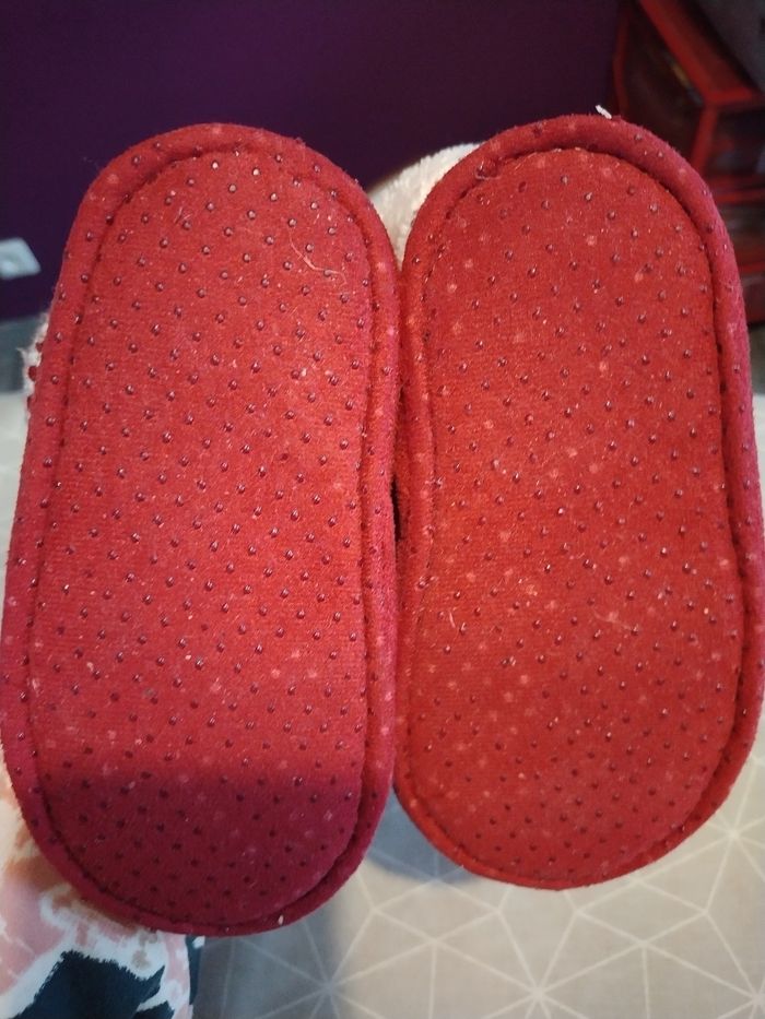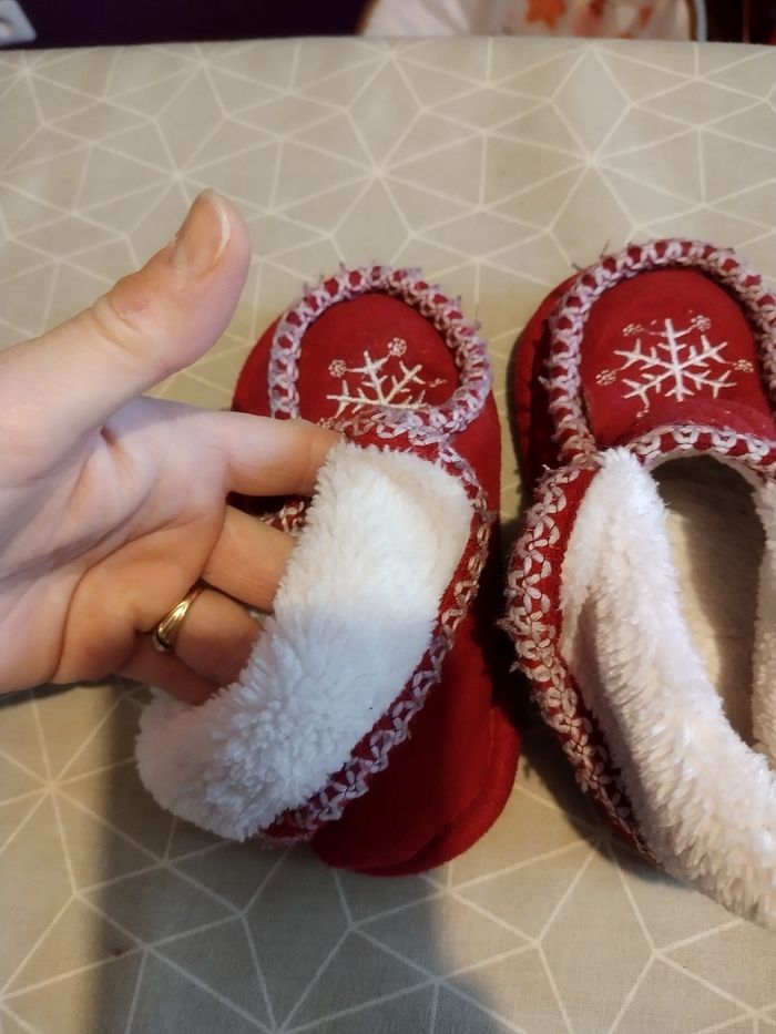 Chaussons fourrés rouge et blanc pointure 25 Le rouge à légèrement déteint sur le blanc