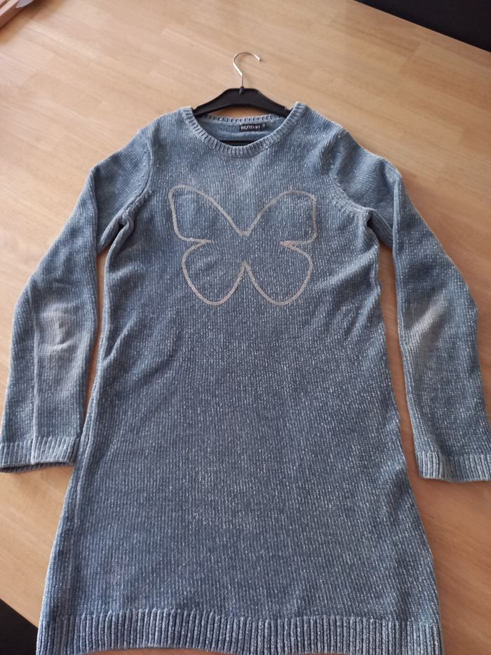 Joli pull long en bon état. Légères usures aux coudes.