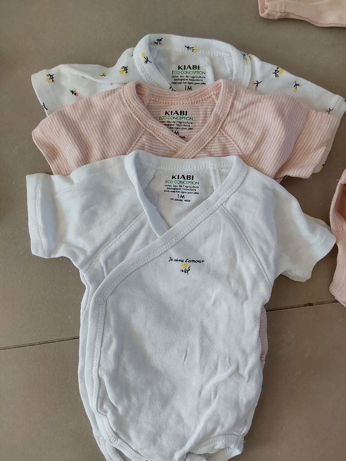 Lot de bodys en taille 3 mois en très bon état 6 bodys kiabi manches longues (ouverture devant et deux en passage par la tete) 3 bodys kiabi manches courtes (jamais porté) 2 bodys h&m manches longues