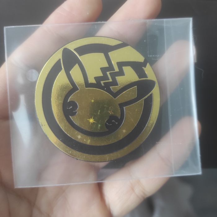 Bonjour Je vends le grand jeton pokémon officiel pikachu doré 25 ans N'hésitez pas à regarder mes autres annonces pour grouper l'envoi et réduction Bonne journée :)