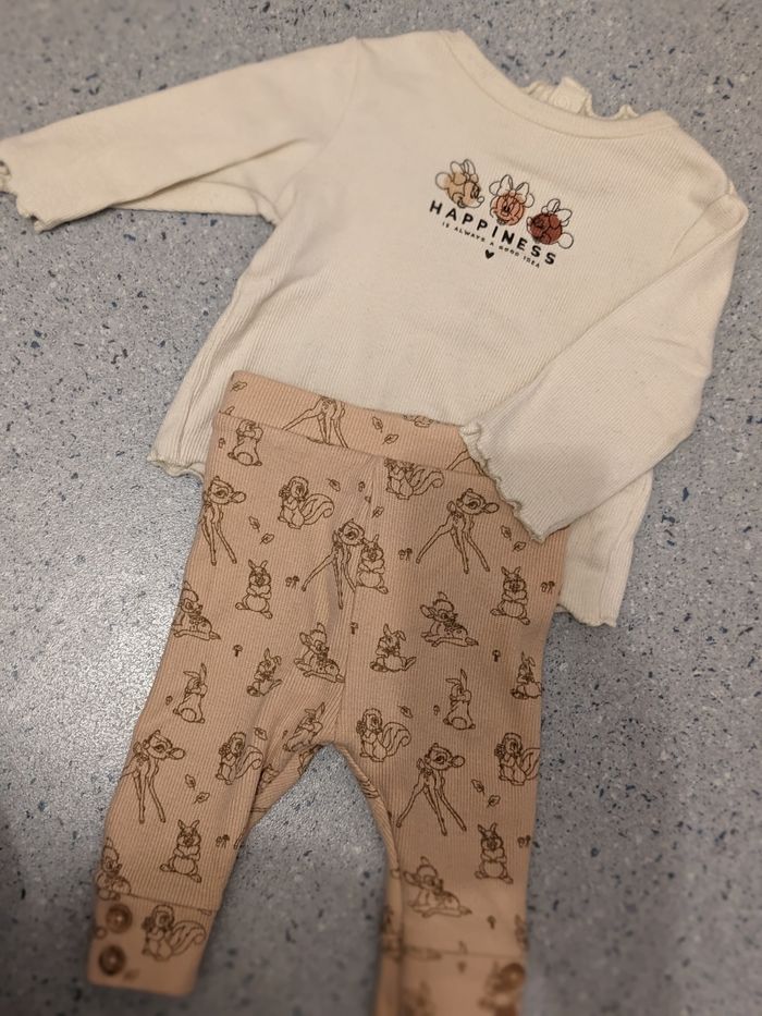 Pantalon Bambi 3 mois T-shirt manche longue Minnie 3 mois ( S'ouvre entièrement dans le dos)
