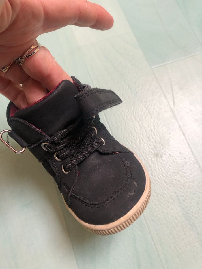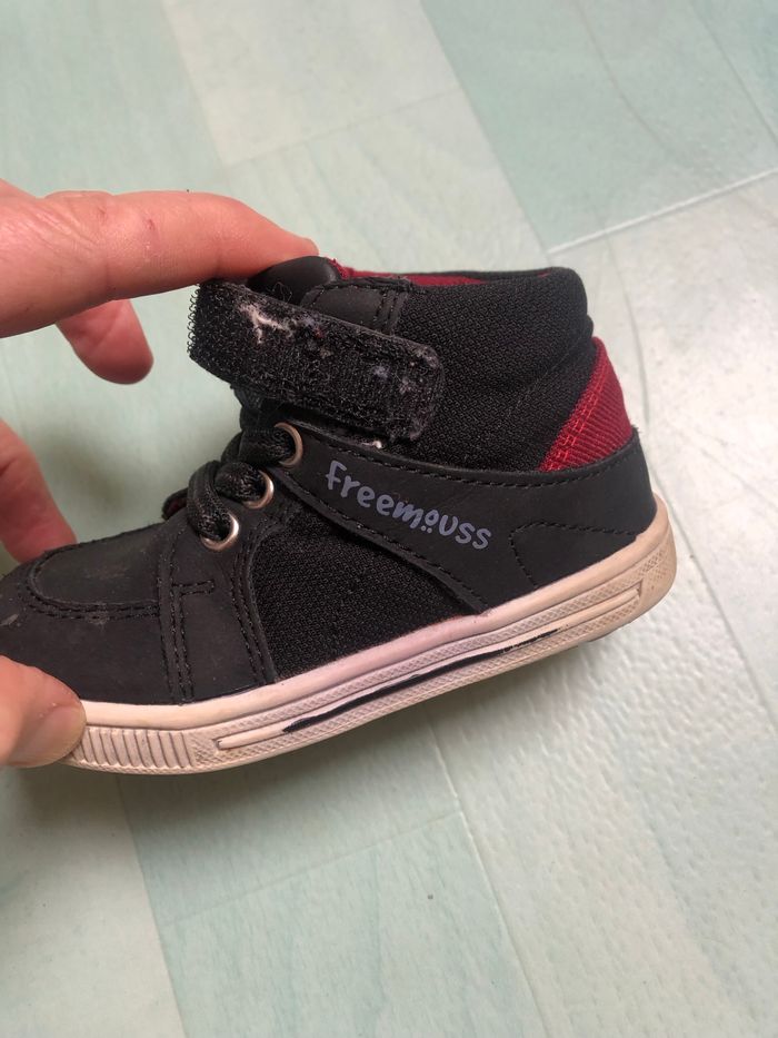 Baskets montantes « Freemouss » pointure 20, noire Lacets fictifs et 1 scratch Légèrement abîmé sur le dessus mais peut faire une saison sans problème (dernière photo)