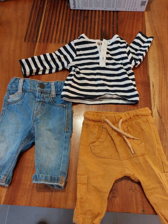 Lot 2 pantalons 1 tee shirt kiabi 1 mois