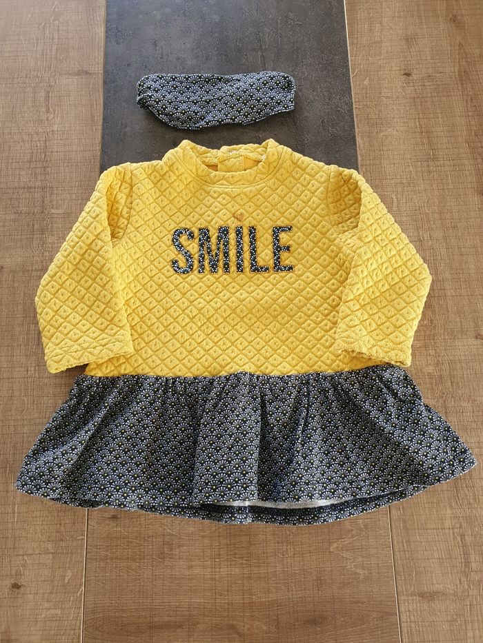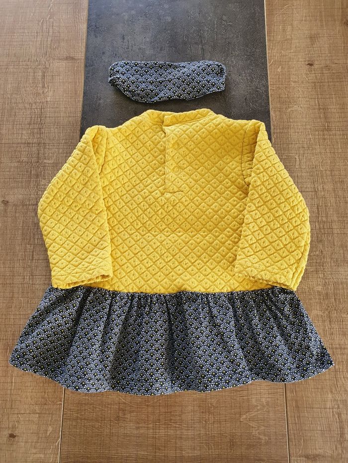 Ensemble comprenant une robe, manches longues et un bandeau, sans marque, taille 6 mois.