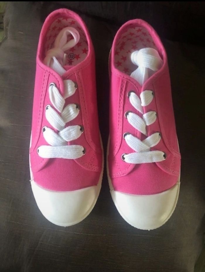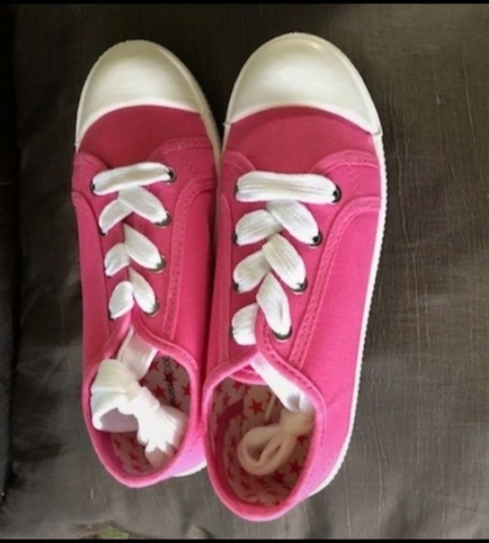 Baskets basses en toile - Toile canvas - Fermées par lacets sous œillets - Petit capot de protection devant COMPOSITION - Dessus textile - Doublure textile - Semelle intérieure textile - Semelle extérieure élastomère #sisterkayachaussurefille32 Pointure : 32 Coloris : rose Prix : 11 € Neuve jamais portée Réf : b.00 - 3S