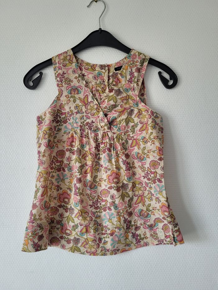 Blouse sans manches de marque IKKS taille 12 ans Beige avec motif fleuri 100% coton En très bon état