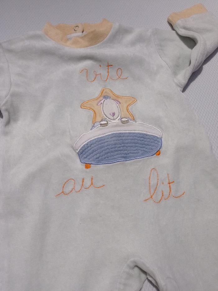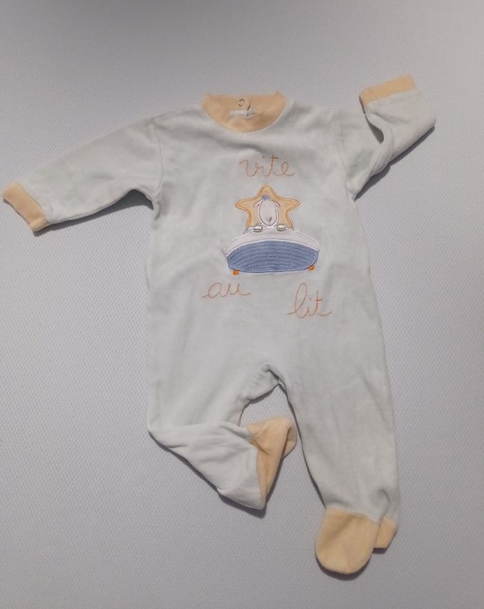 Pijama dors bien velours "Vite au lit" Étiquette taille 6 mois
