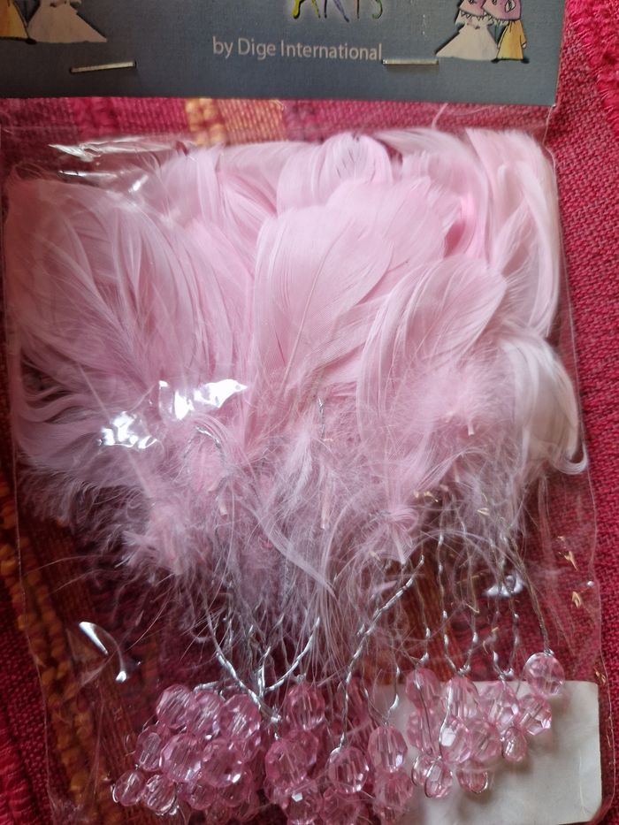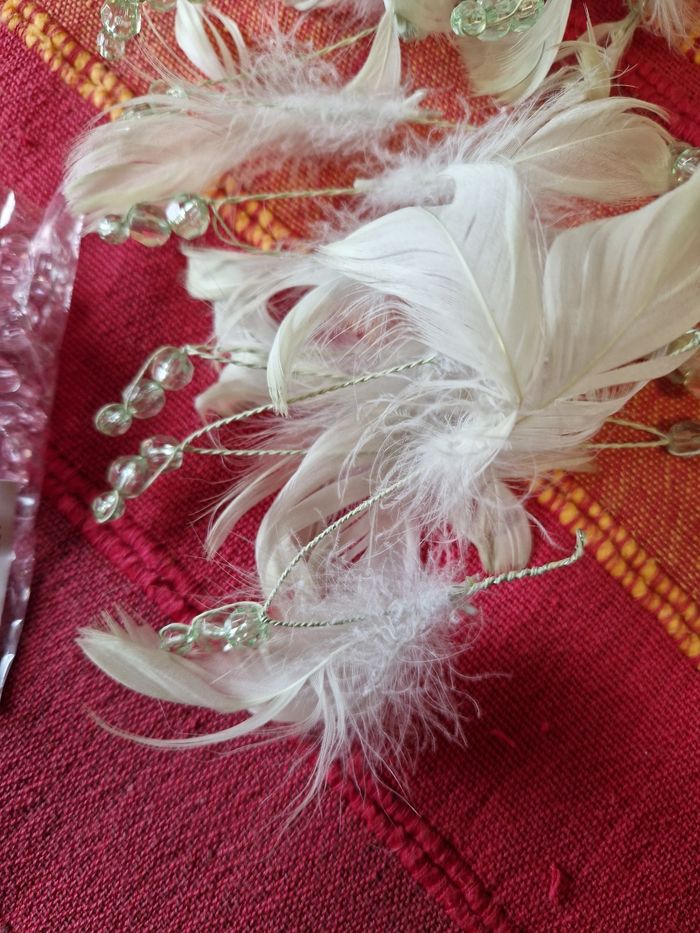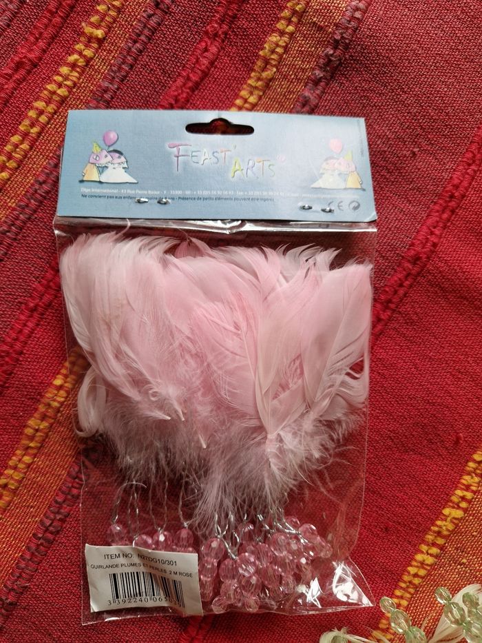 Lots 2 guirlandes perles et plumes. Neuves. 1 roses 1 vertes. 1 guirlandes mesures 2 mètres