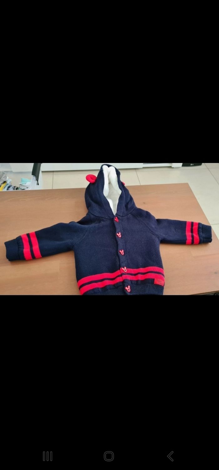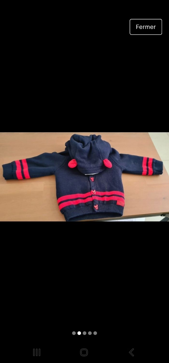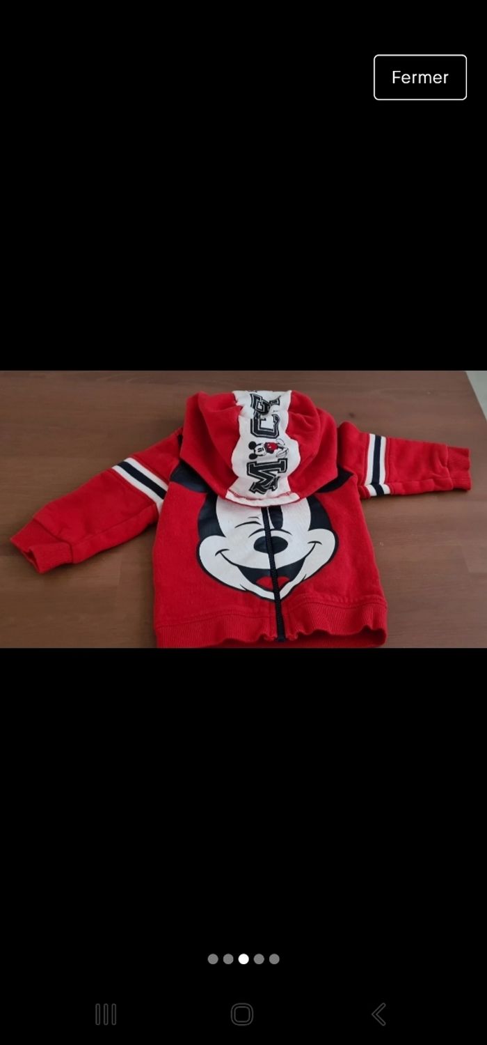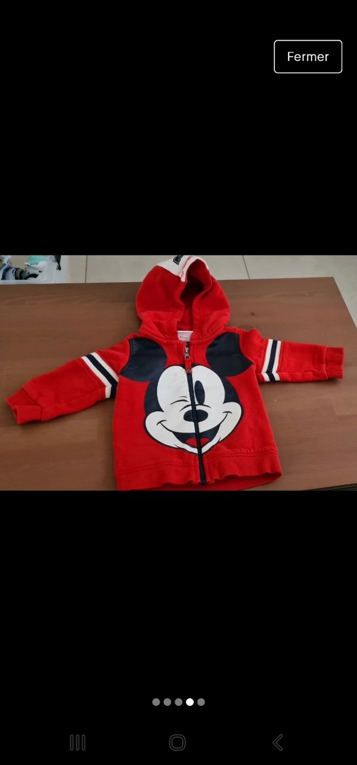 Lot de 3 pulls Très bon état juste sur la veste zip mickey au 1er lavage il y a un léger craquement sur le blanc sur mickey. Sinon très bon état, les 2 autres n'ont jamais été porter