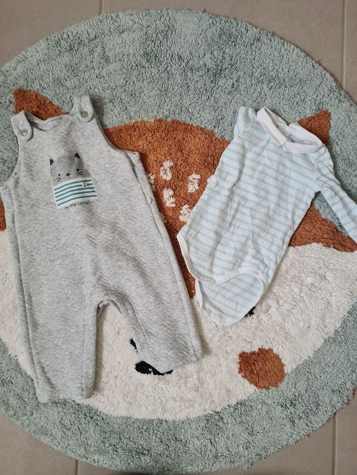 Ensemble salopette chat en taille 6 mois de la marque Obaibi Porté mais encore en très bon état J'ai d'autres articles de mon fils que je vais rajouter petit a petit, n'hésitez pas à jeter un coup d'œil #NoaM0604 #NoaM6mois
