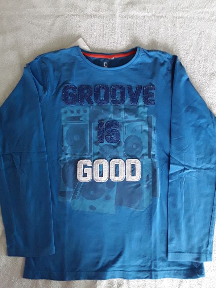 Je vend un TSML de couleur bleu clair motif écriture de la marque Okaidi