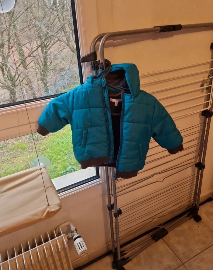 Manteau 9 mois. Sur capuche quelques accro de chat.
