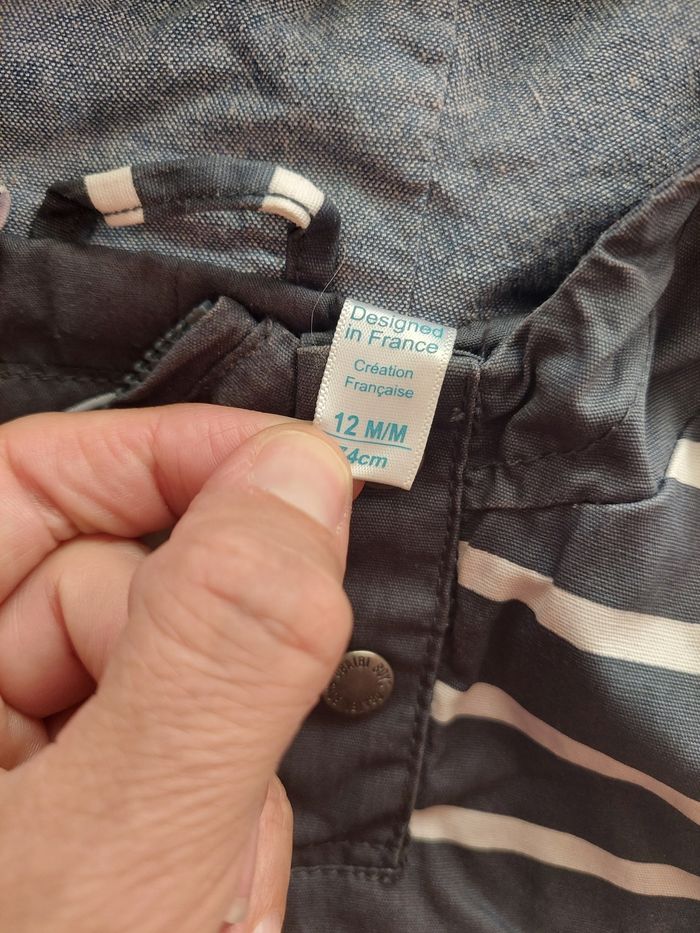 Coupe-vent blouson marinière capuche fermeture zip sur le côté pression au cou bon état 12 mois #garcon12mois_mondressing11_bv
