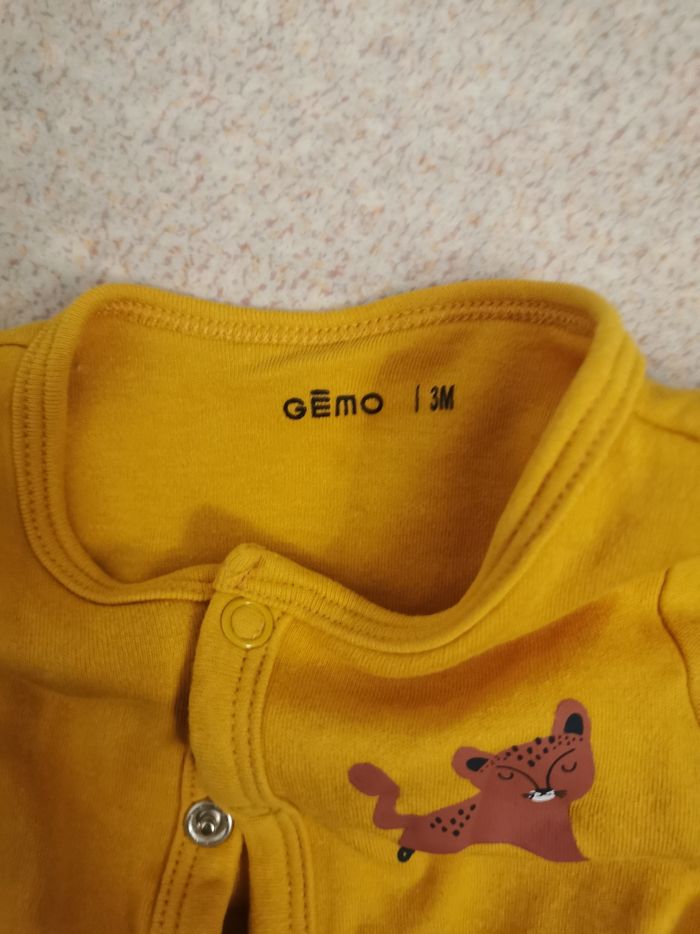 Vends pyjama Gémo, jaune moutarde, en coton, taille 3 mois ouverture sur le devant