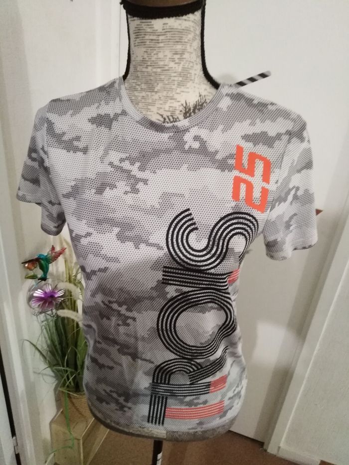 Tee shirt gris, noir et orange style sport. Bon état général Beaucoup d'autres vts garçon mm taille également à vendre ds mon dressing et réduction activée