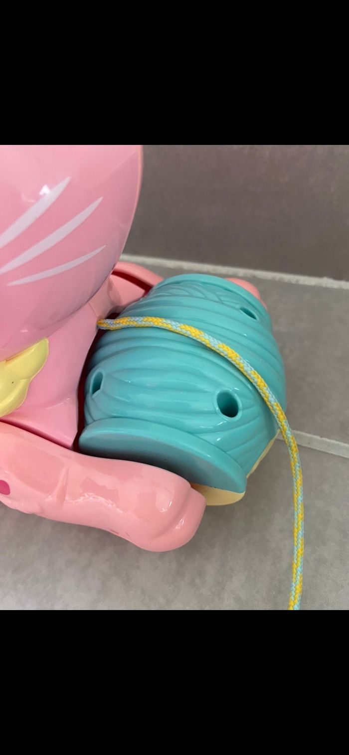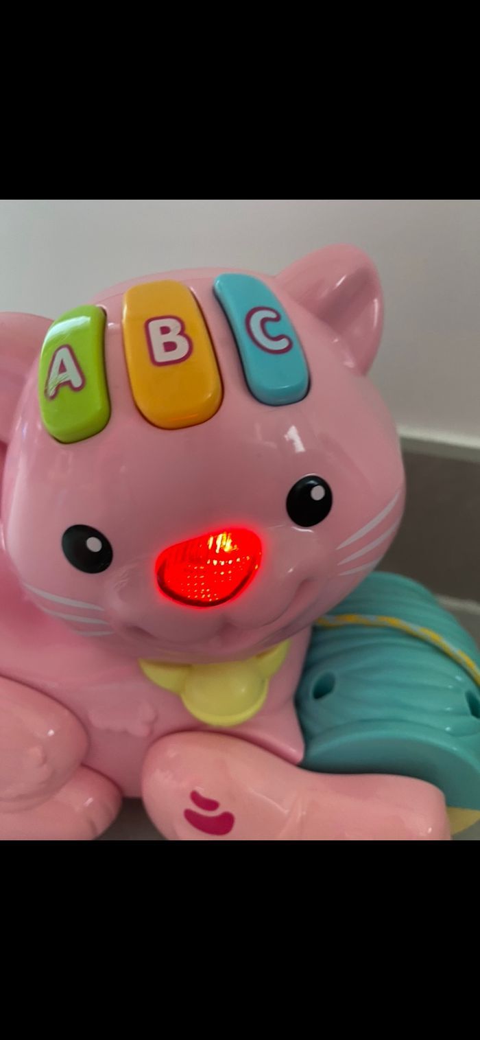 Petite corde pour tirer le p'tit chat. lest sonore et lumineux. Fonctionne parfaitement. Livré avec piles. Je l'ai parfaitement nettoyer comme tous les jouets de mon dressing. Comme ça votre enfant pourra jouer directement avec. N’hésitez pas à me suivre car encore beaucoup de vêtements fille, des chaussures en cuir, des chaussons… (du 1 mois au 8 ans), des vêtements garçon (du 1 au 12 mois pour le moment ). Maison non-fumeurs et sans animaux même si je les adore. Il n'y aura pas de poils ou d'odeur désagréable. Vous recherchez quelques choses, demandez moi. Je réponds très rapidement. Bon shopping 😊.