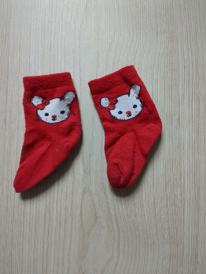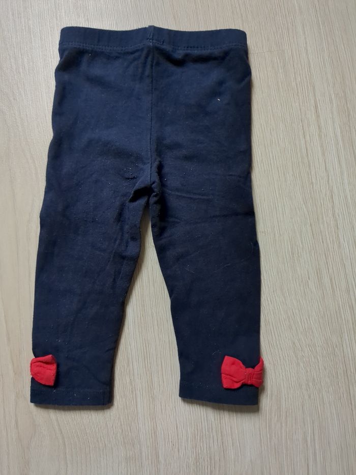 Leggins avec des petits nœuds rouges au bas des jambes. Chaussettes avec motifs de lapins.
