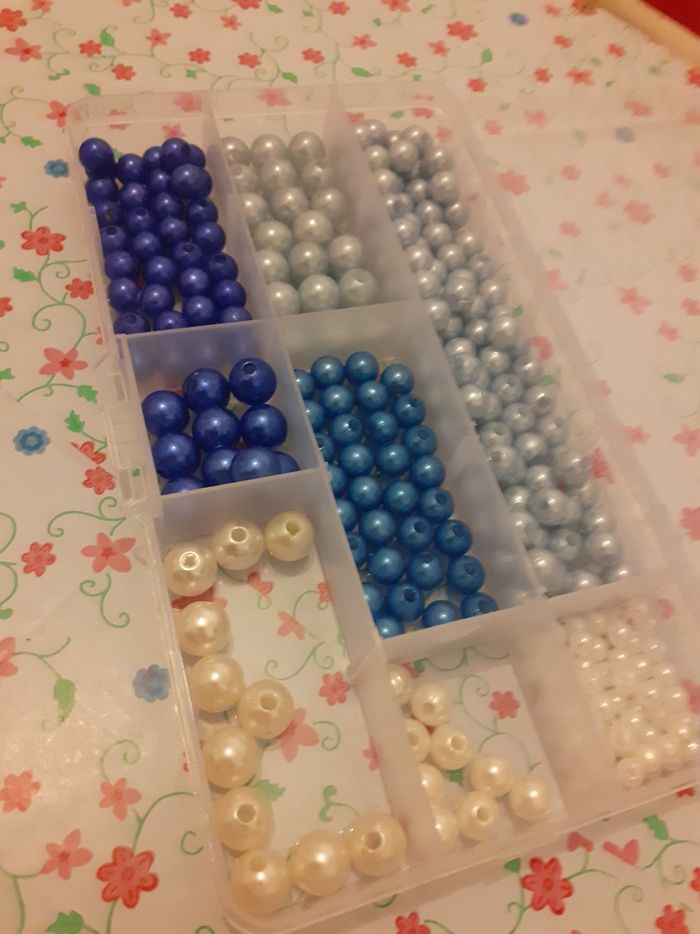 Boîte perles nacre bleu et blanche - photo numéro 1